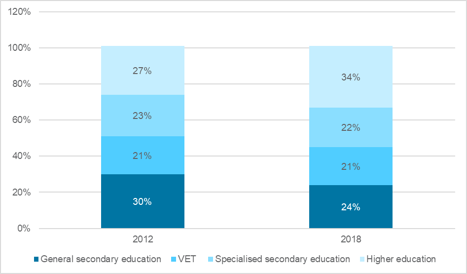 Figure 2. Distribution of working age population by education level (end of the year)
